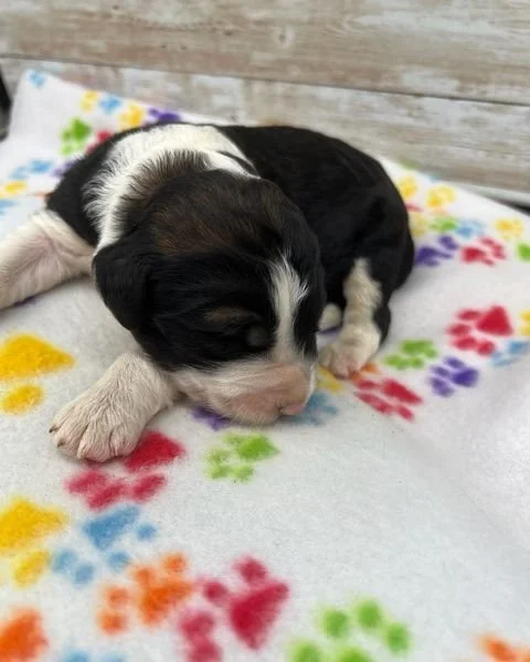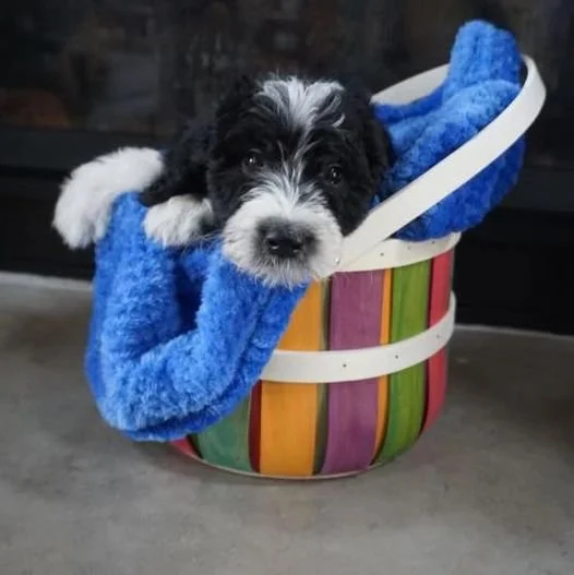 Sheepadoodles are an interesting mix of poodle and Old English Sheep Dog (OES). Just like other “doodle” breeds, the size and color will depend very much on the poodle parent. However, the most common sheepadoodle color is black & whiteThe Sheepadoodle is perfect for someone who loves being an active, or a very active family. As a bonus, they are hypoallergenic, so little to no shedding to clean up!